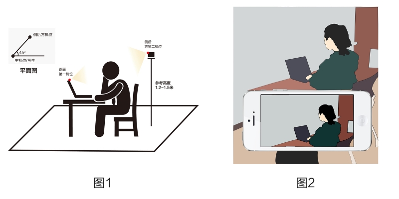 - 考試開始,監(jiān)考老師利用騰訊會議雙機位監(jiān)考。